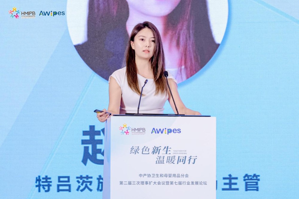 Hogyan lehet előmozdítani az ipari átalakulást zöld és alacsony szén-dioxid-kibocsátású eszközökkel? "A minőségi fogyasztás korszakában a fenntartható rostanyagok az anya- és csecsemőtörlő ipar átalakulásának központi versenyképességévé válhatnak." Yan Hui, a Sateri Group vezető marketingmenedzsere az Ukes® és a Lyocell, mint biológiailag lebomló regenerált cellulózszálak környezetbarát és teljesítménybeli előnyeit osztotta meg a „Textured Fiber I Plant-derived Fiber Reconstructing the New Ecology of Maternal and Infant Wipes” témával, amely versenyképesebb zöld nyersanyag-megoldásokat kínál a higiéniai és az anya- és gyermektermékek iparának.
