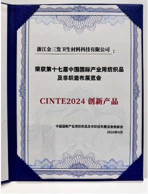 A Zhejiang Kingsafe Sanitary Material Technology Co., Ltd. által benyújtott "Green Super Soft Sandwich Spunlace Nonwoven" nyerte el a zöld fejlesztési innovációs terméket.