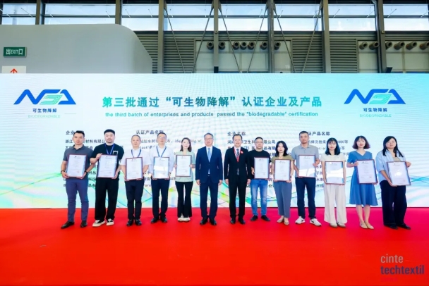 Az ülésen Sun Ruizhe, a Kínai Nemzeti Textil- és Ruházati Tanács elnöke és Li Lingshen, a Kínai Nemzeti Textil- és Ruházati Tanács alelnöke tanúsítványt adott ki a „biológiailag lebomló” tanúsítványon átesett harmadik vállalatcsoport képviselőinek.