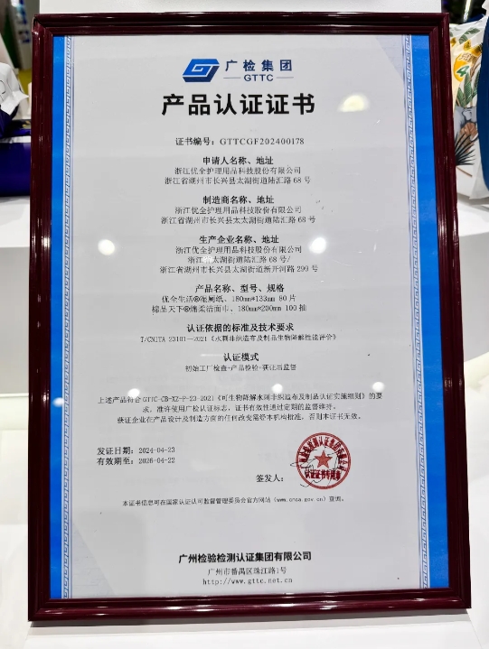 A CINTE24 első napján a "biológiailag lebomló" tanúsítvánnyal rendelkező vállalkozások harmadik tételét és termékkiadási ceremóniáját tartották a Shanghai New International Expo Centerben. A Kingsafe Group & Youquan Co., Ltd. aktívan támogatja az iparág fenntartható fejlődését, a Vliesipari Zöld Fejlesztési Innovációs Szövetség alelnöki egységeként, és a kifejlesztett és forgalomba hozott nedves WC-papír megfelelt a "biológiailag lebomló" minősítésnek. " tanúsítás, amely tanúja volt az iparág feltárásának és innovációjának a zöld fejlődés előmozdítása érdekében.