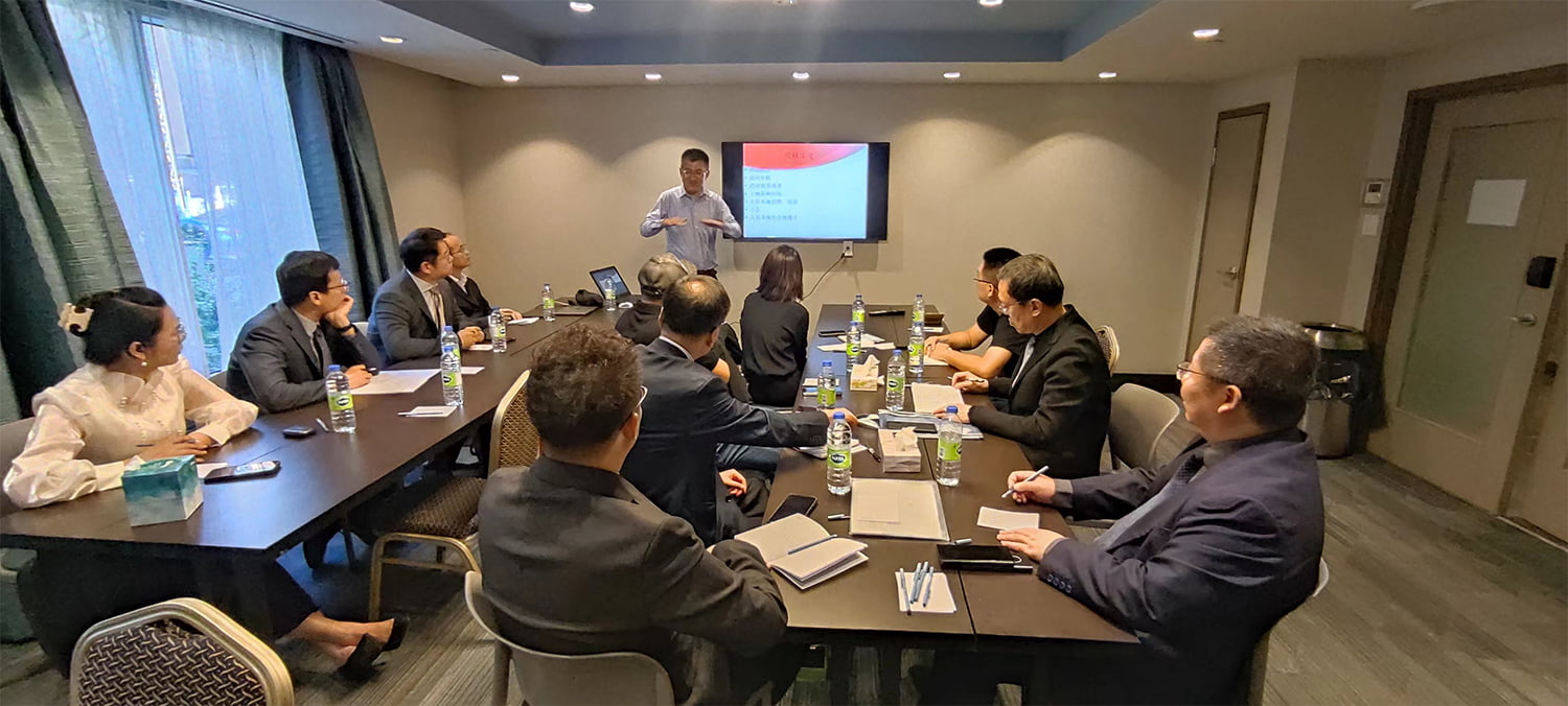 Montrealban a delegáció kutatást végzett a kanadai Tiandingfeng cégről, és megbeszéléseket és eszmecserét folytatott a vállalat illetékes tisztviselőivel. Sun Xiangjie, a Tiandingfeng Company marketing menedzsere és Xiang Feng, az elnök a cég tengerentúli befektetéseinek hátterét és kanadai befektetési helyzetét mutatta be. Részletesen megosztották az észak-amerikai befektetés előnyeit és hátrányait, és javaslatokat tettek a kínai vállalatok számára a tengerentúli befektetésekre.